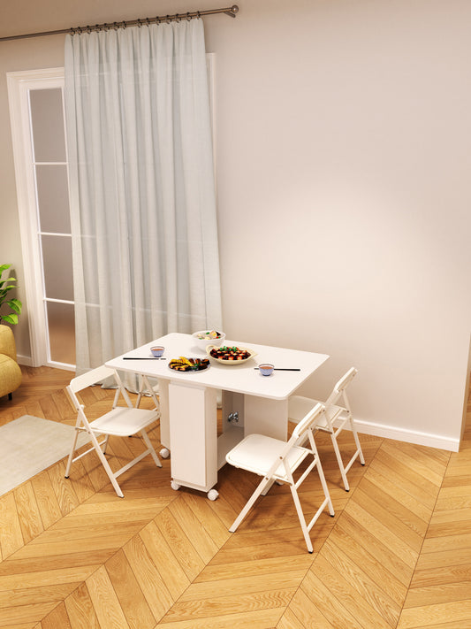 MerryRabbit – 可移動摺疊桌椅1+4套裝WT043-10+JSZ2039-1 Movable folding table with 4 Chairs set