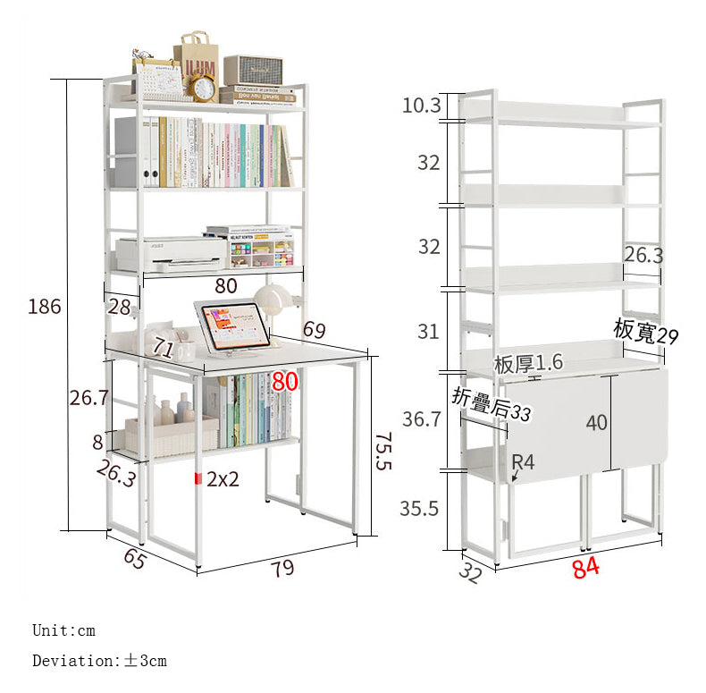 摺疊創意書桌書架MR-JSZ2075-1 白色 [3-7工作天特快派送]