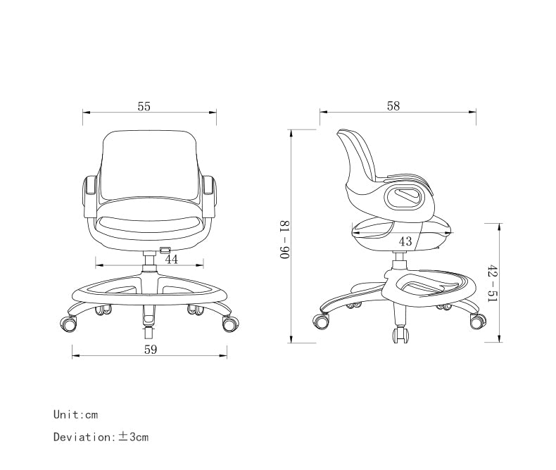 全套塑料件採用全新進口PP材料,堅固耐用,質感高雅; 坐墊及靠背面料採用高彈透氣網布,填充物爲高密度定型海綿,坐感舒適,長久不變形; 靠背及扶手一體化可活動設計,座深及靠背高度可適應与滿足兒童的成長過程; 配置自重刹車輪,可讓兒童使用時不晃動專心學習,又能方便移動; 安裝簡便,有詳細安裝說明書; 適用範圍:適用3-16嵗兒童使用 |