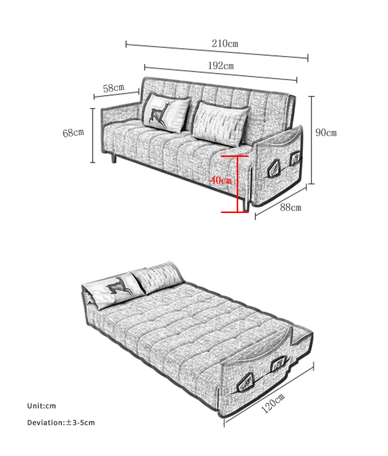 可活動拆卸扶手,靠背可多檔折疊,可變成沙發床;