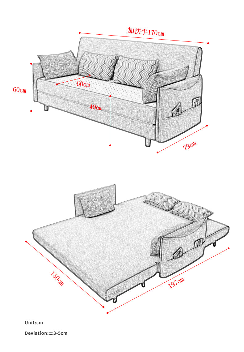 Multi-functional folding Fabric sofa bed 1.7 meters
