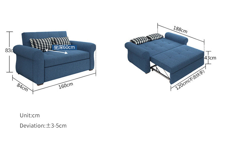 Sofa can be arranged into a bed for just couple of simple steps. Washable fabric cover with solid wood frame and metal hardware, strong and durable. No installation need.