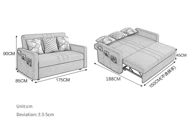 Sofa can be arranged into a bed for just couple of simple steps. Washable fabric cover with solid wood frame and metal hardware, strong and durable. No installation need.