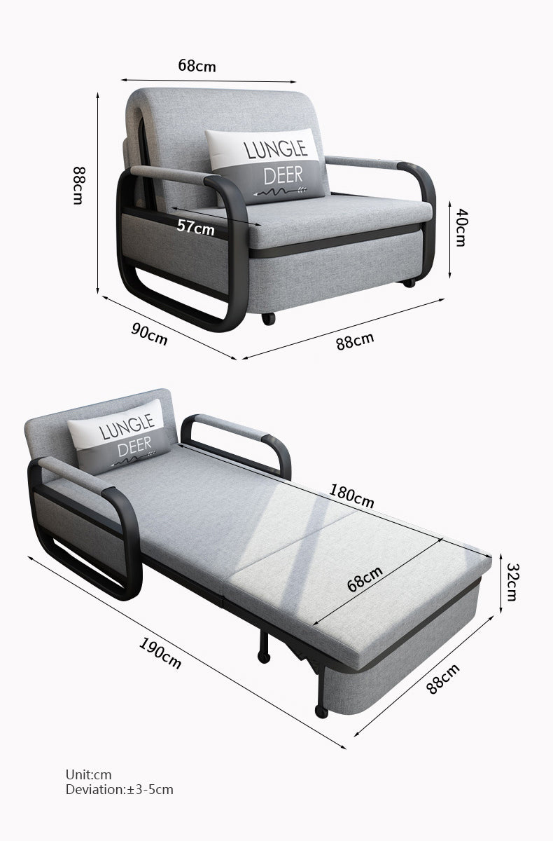 Sofa can be arranged into a bed for just couple of simple step. Washable Fabric cover with solid wood frame and metal hardware, strong and durable. Simple Installation Need.