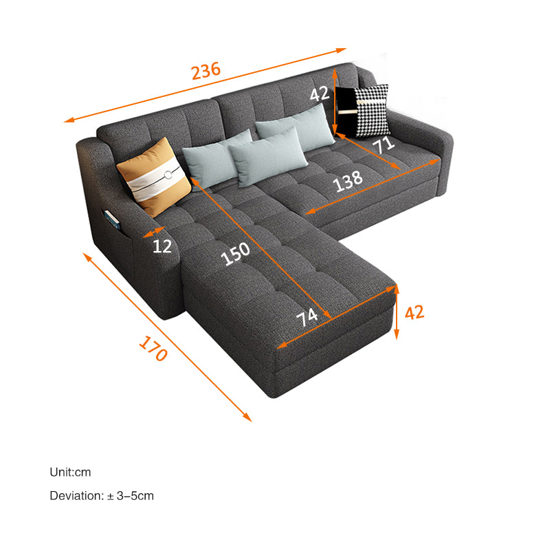 MerryRabbit - 多功能折疊2人位+貴妃位儲物布藝沙發床 MR-50 L-Sahpe Fabric Sofa /Sofa Bed with Storage