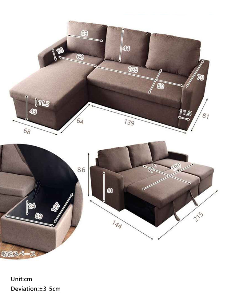 MerryRabbit – 簡約多功能布藝儲物梳化床 MR-312 Multi-functional L shape fabric storage sofa bed