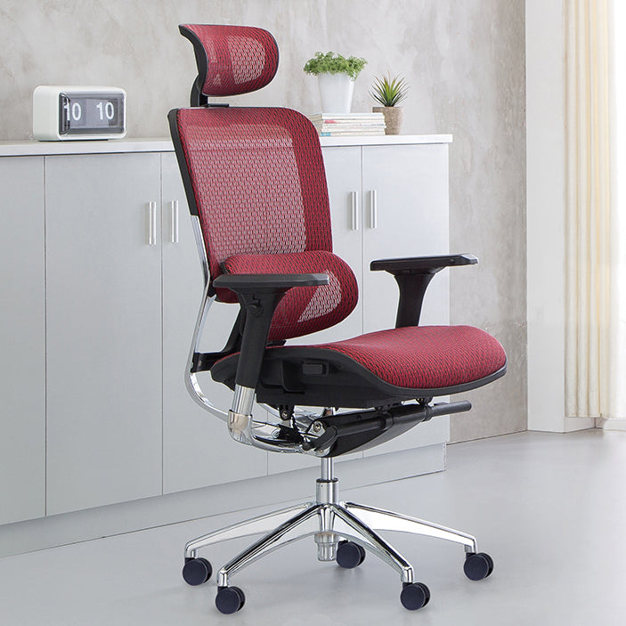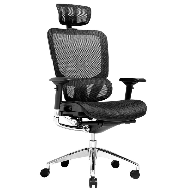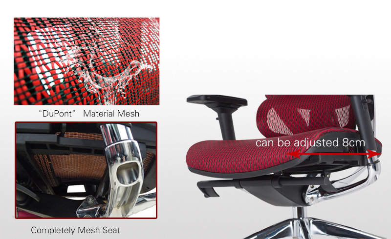 Multi-functional Ergonomic High-Back Swivel Chair with Dupont material mesh,aluminium multi-function mechanism (lockable at any angle), 4D armrest, adjustable waist support and moveable seat.