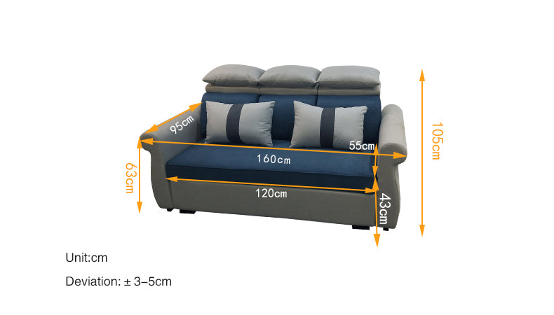 | Fabric Sofa with Multi angle adjustable Headrest and Storage.Washable fabric cover with solid wood frame and metal hardware, strong and durable. |