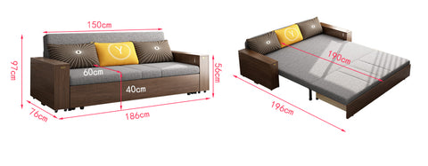 Washable Fabric Cover with solid wood frame and metal hardware (with Stroage), strong and durable. 2 Armrests can be Changed into Coffee Table with Storage.