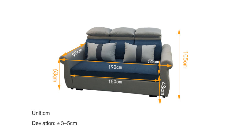 Fabric Sofa with Multi angle adjustable Headrest and Storage.Washable fabric cover with solid wood frame and metal hardware, strong and durable.
