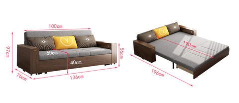 | Washable Fabric Cover with solid wood frame and metal hardware (with Stroage), strong and durable. 2 Armrests can be Changed into Coffee Table with Storage. |
