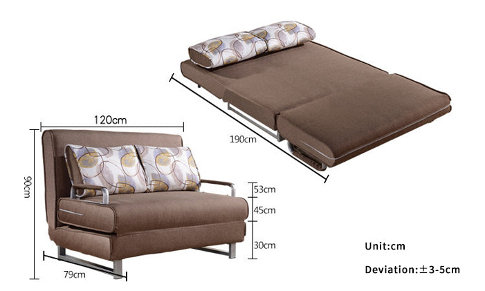 商品簡介 全身進口棉痲面料,可拆洗;填充物爲高密度全新海綿,厚實飽滿,回彈力強,給人完全的承託和包容感,久坐不累; 折疊功能,收起來是沙發使用,展開之後無需床墊,即可當成床使用;靠包爲3E級公仔棉填充,柔軟舒適、蓬鬆飽滿;內部全實木框架材料製作,結實耐用,經久不變形;扶手及底座整體採用特製的鋼架,堅固耐用。