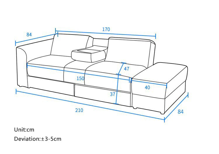 全身採用PU皮面,容易清潔耐用;設計簡約時尚,易於配搭不同家居風格.梳化底座設有兩個儲物櫃格,整齊擺放雜物. 中間椅背可變身為小茶几或手枕,切合不同情況需要.扶手可左右自由擺放