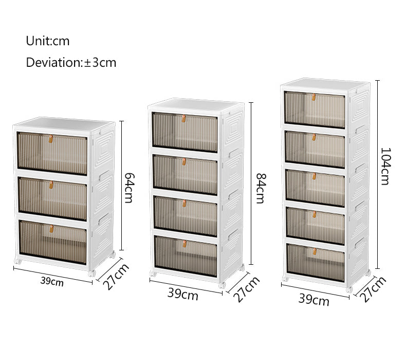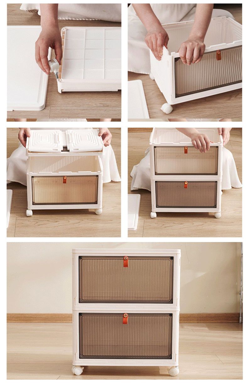 全新優質PP材料,環保安全;美觀大方;每層獨立拉門設計拿取方便,底腳采用靜音小滑輪,方便移動櫃子;安裝全程無需使用工具,創意卡扣式疊加設計更加方便.